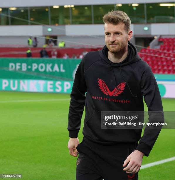 LEVERKUSEN, GERMANY - APRIL 3: Goalkeeper Lukas Hradecky of Bayer 04 Leverkusen looks on ahead of the DFB cup semifinal match between Bayer 04 Leverkusen and Fortuna Düsseldorf at BayArena on April 3, 2024 in Leverkusen, Germany.(Photo by Ralf Ibing - firo sportphoto/Getty Images)